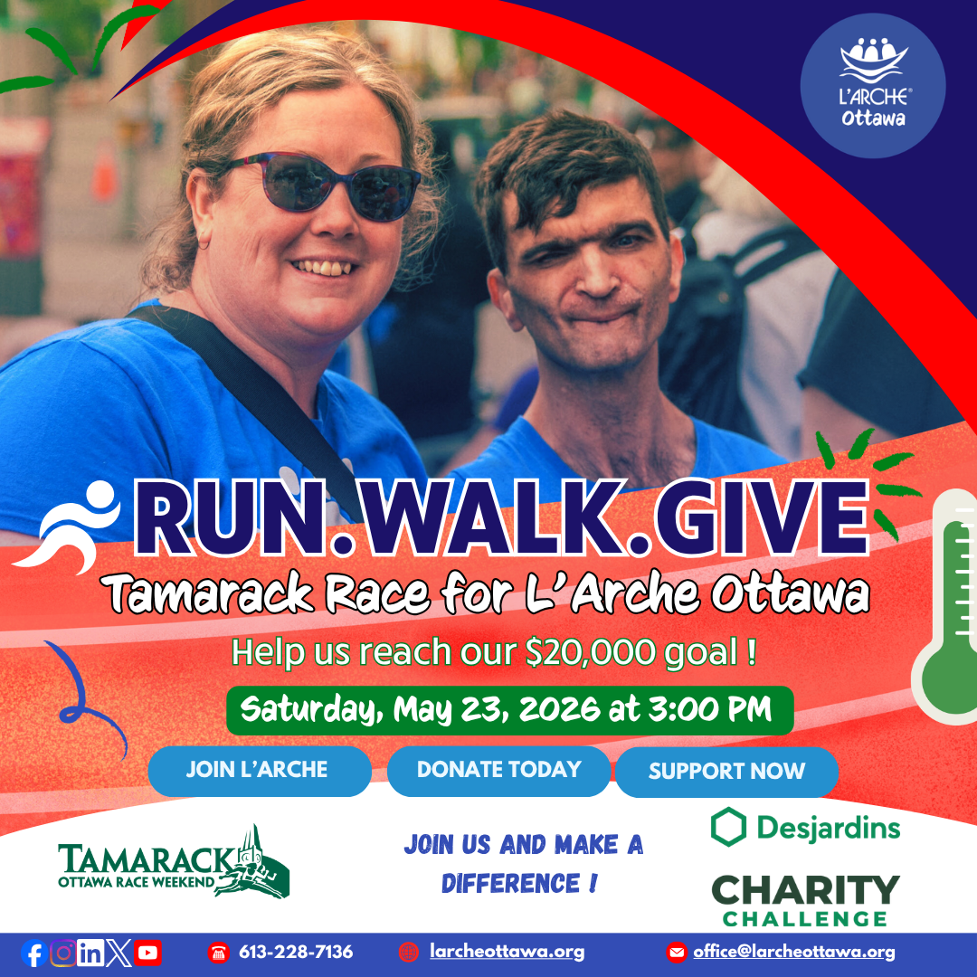 - Contact us if you’d like to wear a L’Arche Ottawa t-shirt during the race